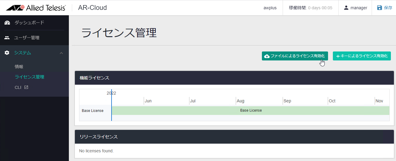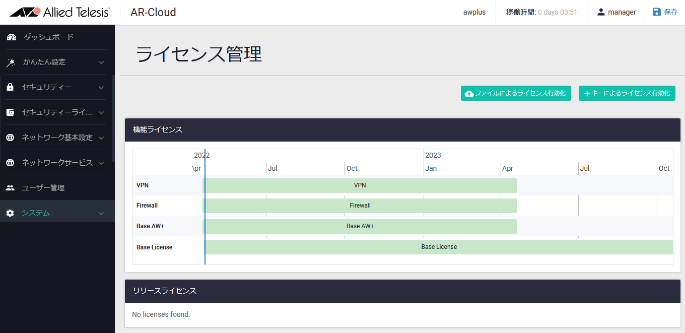 本製品の利用にあたっては最低限「基本ライセンス」が必要です。