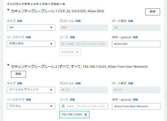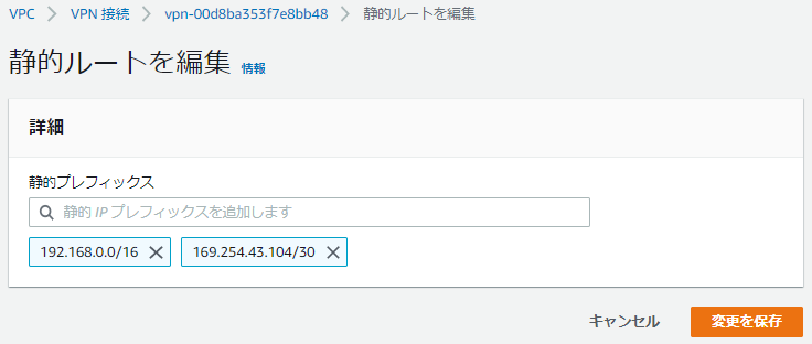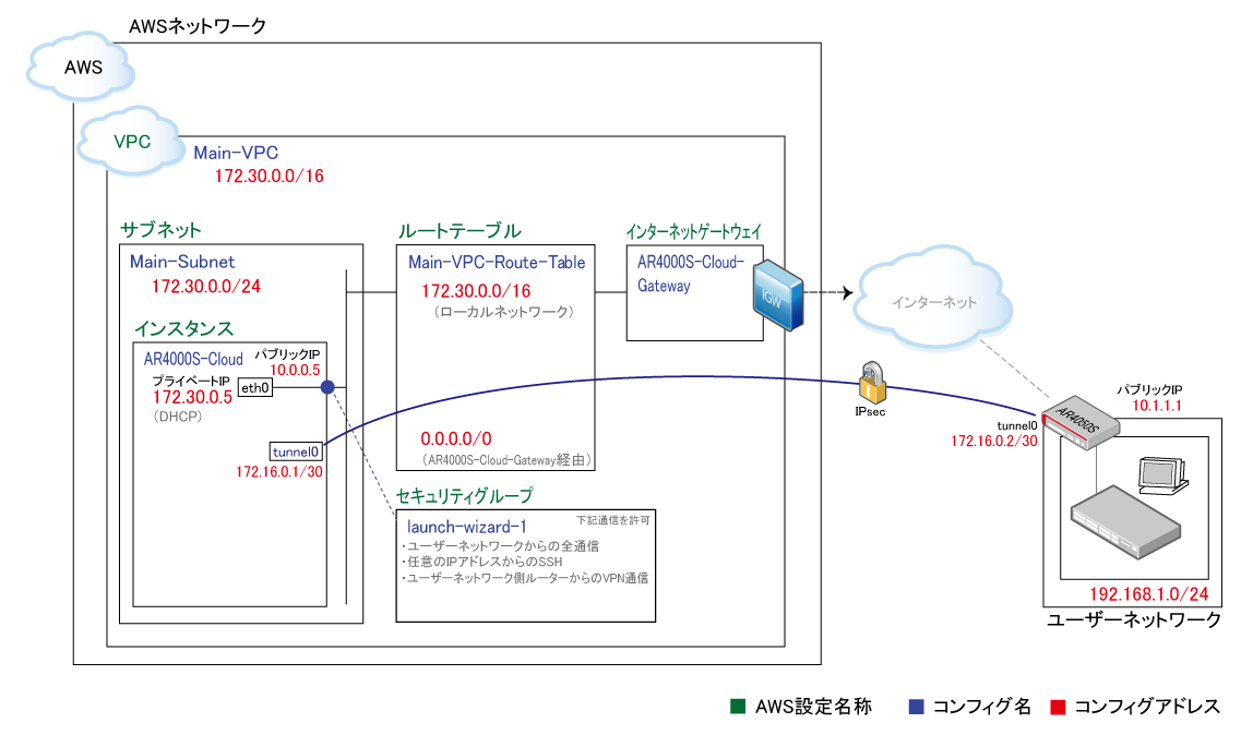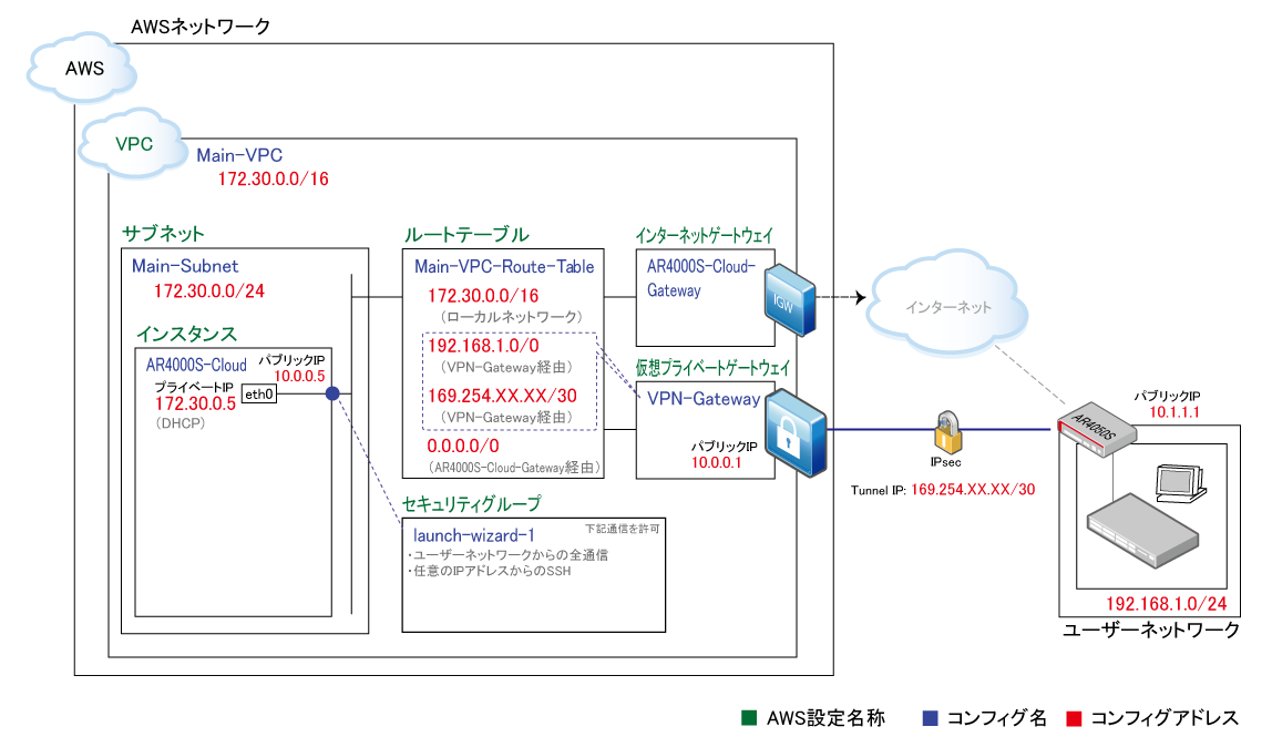 AR4050Sから開始された通信について、本製品からAR4050Sへの戻りパケットを正しく返送するための設定は、AWS VPNのスタティックIPプレフィックスの項で説明済みです(「IPsec設定」 参照)。