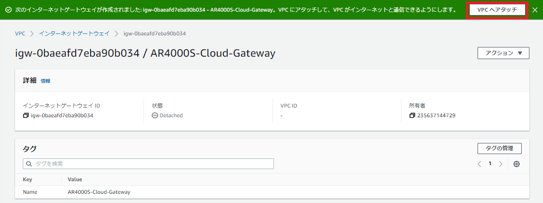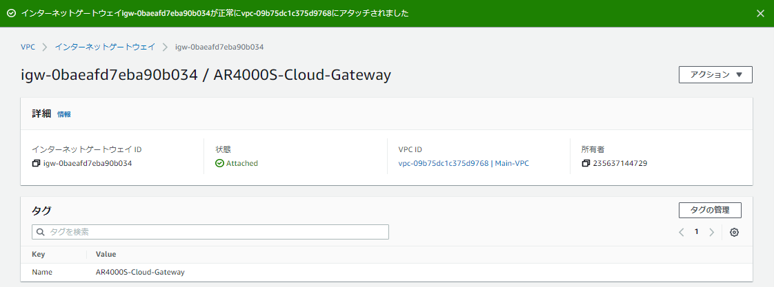 本製品が正常にAWSにアップロードされたときは、以下のメッセージが表示されます(XXXXXXXXの部分は自動的に割り当てられます)。