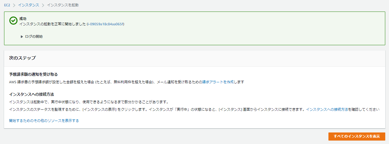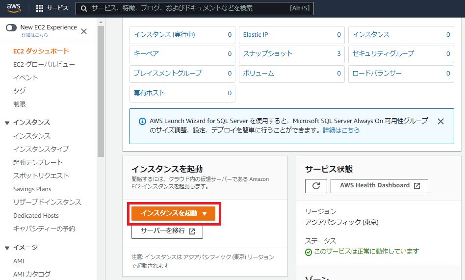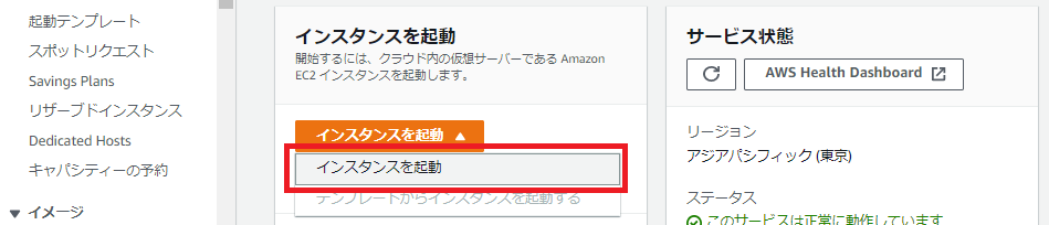 EC2 ダッシュボードで [インスタンス] をクリックします。