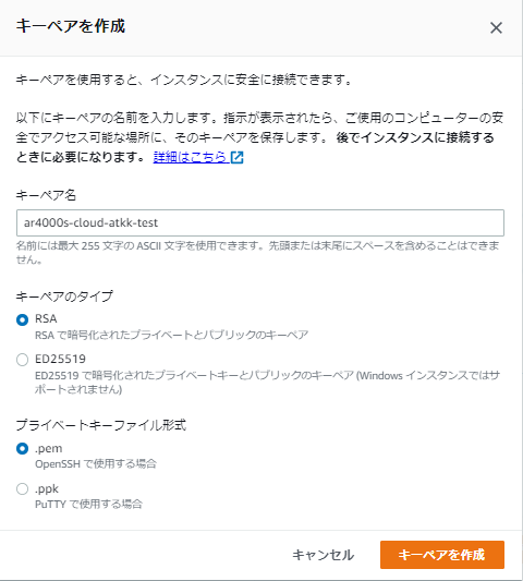 作成したキーは一回しかダウンロードできません。また、キーをメールなどで送信したりしないように注意してください。