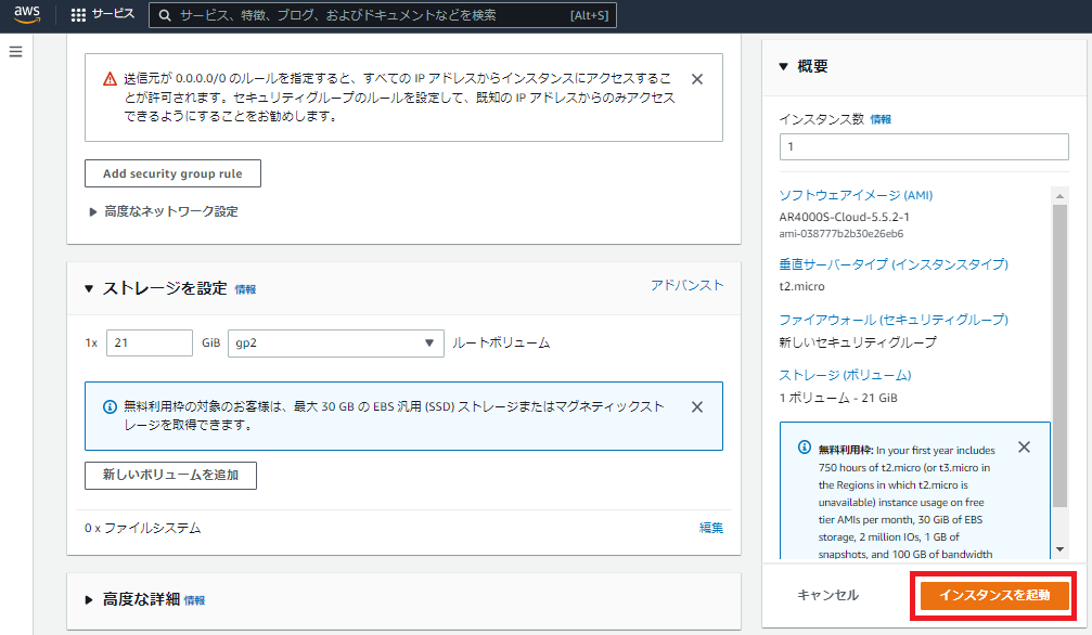 作成したAMIから本製品のインスタンス(仮想マシン)を作成します。