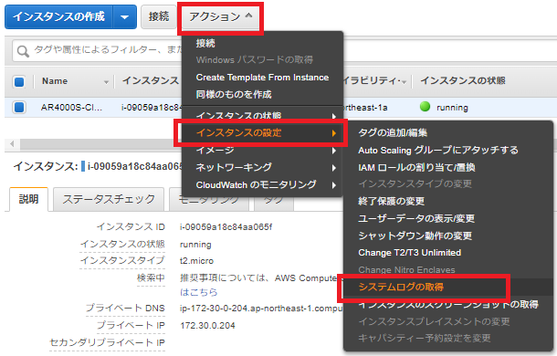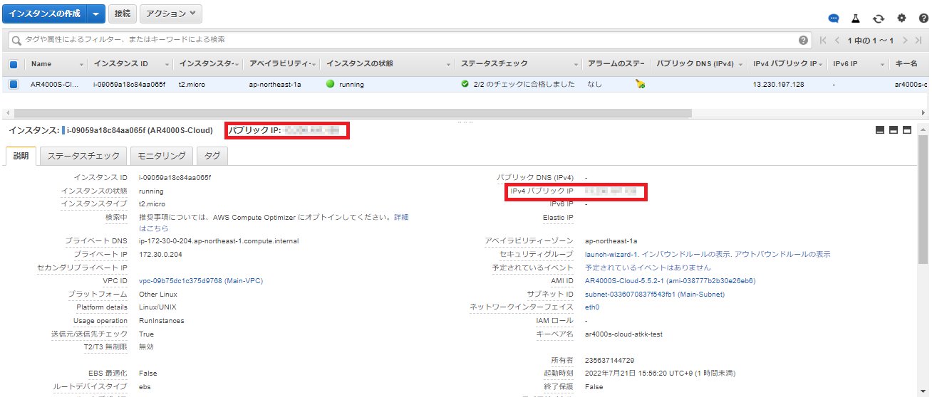 AMINAME : AMI名(例:AR4000S-Cloud-5.5.5)