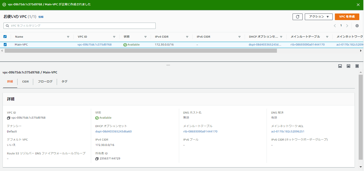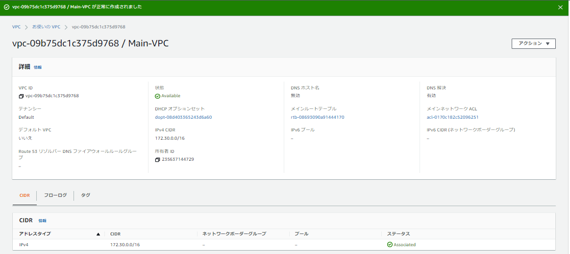 スクリプト実行時に表示される内容は一例です。AWS側の設定その他によって表示内容は異なることがあります。