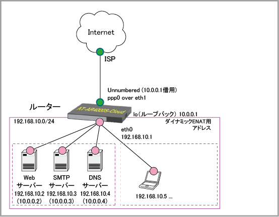 | eth0 | 192.168.10.1/24 | 管理用IPアドレス |