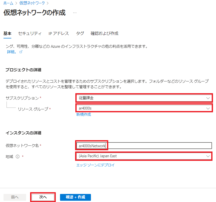 | 仮想ネットワーク | 「ar4000sNetwork」を選択 |