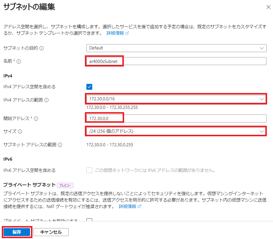 | 仮想ネットワーク名 | ar4000sNetwork |