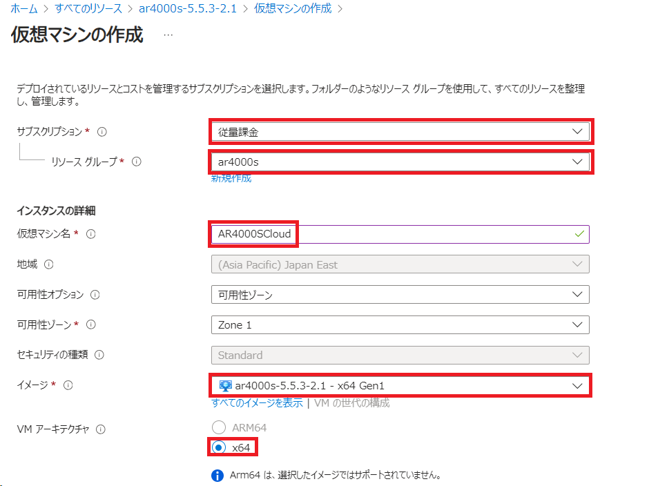 | アップロードするVHDファイル名 | AR4000S-Cloud-5.5.5-1.3.vhd |