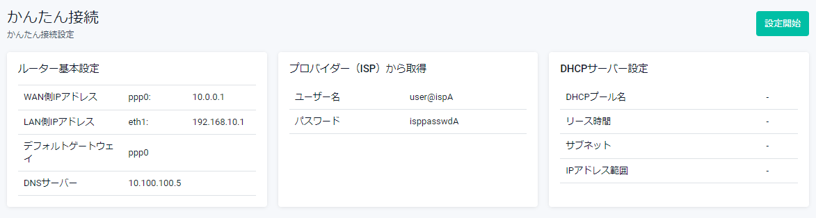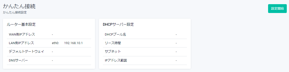 Note「かんたん接続」画面ではeth0をLAN側インターフェースとして扱います。