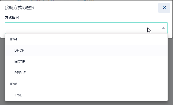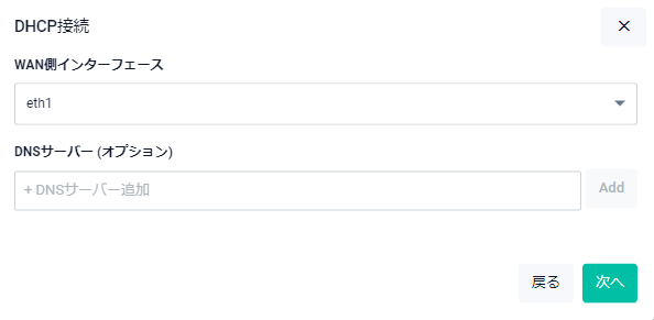 | 名前解決に使用するDNSサーバーを指定します。 DHCPでDNSサーバーアドレスを自動取得する場合はデフォルトのままでかまいません。 固定設定が必要な場合はDNSサーバーのアドレスを入力してから「追加」ボタンをクリックしてください。 |