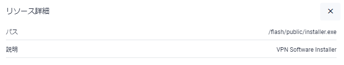 | SHA256ハッシュ | 共有ファイルのSHA256ハッシュ値(ファイル追加時に指定したもの)が表示されます |
