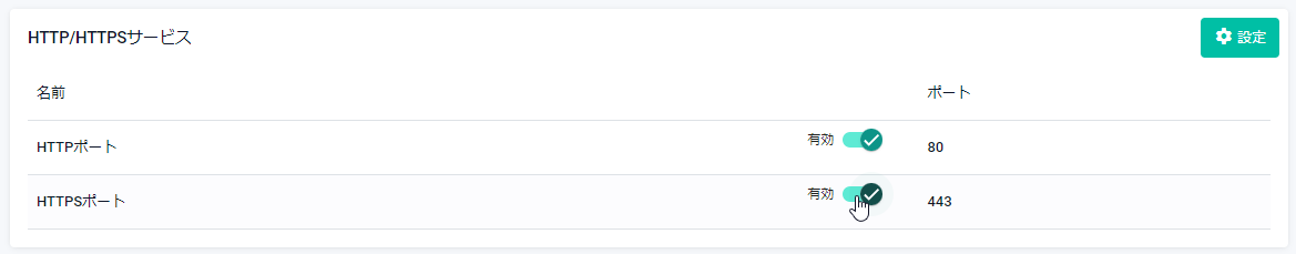 | 削除ボタン | HTTPS待ち受けアドレス/ポートを削除します。削除前には確認のダイアログが表示されます |