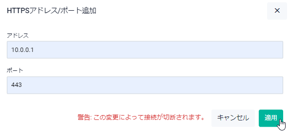 | 適用ボタン | 待ち受けアドレス/ポートを追加して前の画面に戻ります |