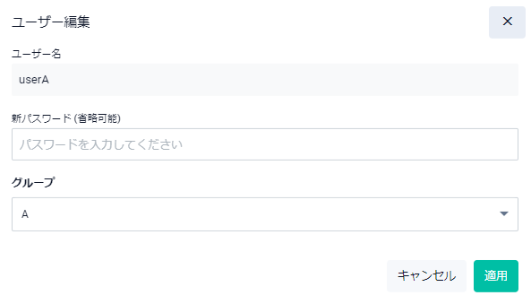 | 新パスワード(省略可能) | ユーザーのパスワードを変更する場合は新しいパスワードを入力してください。変更しない場合は空欄のままにしてください |