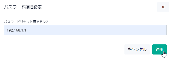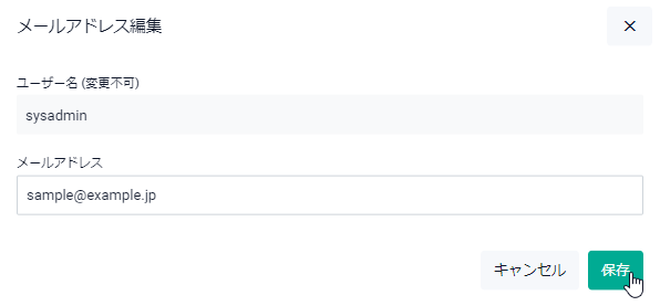 | メールアドレス編集ボタン | ユーザーのパスワード復旧用メールアドレスを編集するためのメールアドレス編集ダイアログが開きます |