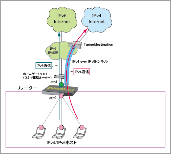 | LAN側(eth0)IPv6アドレス | DHCPv6 PDで取得したIPv6プレフィックスにもとづいて設定 |