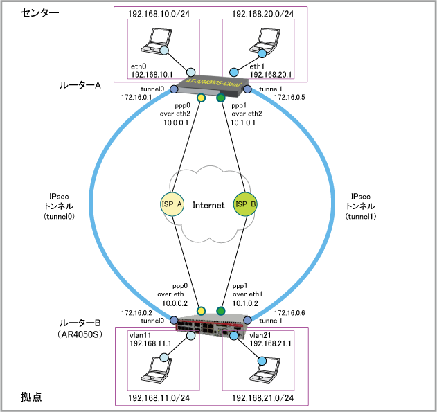 | WAN側IPアドレス | 10.1.0.1 | 10.1.0.2 |