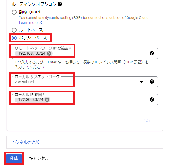 | WAN側IPアドレス | 10.0.0.1/32 |
