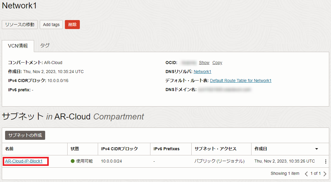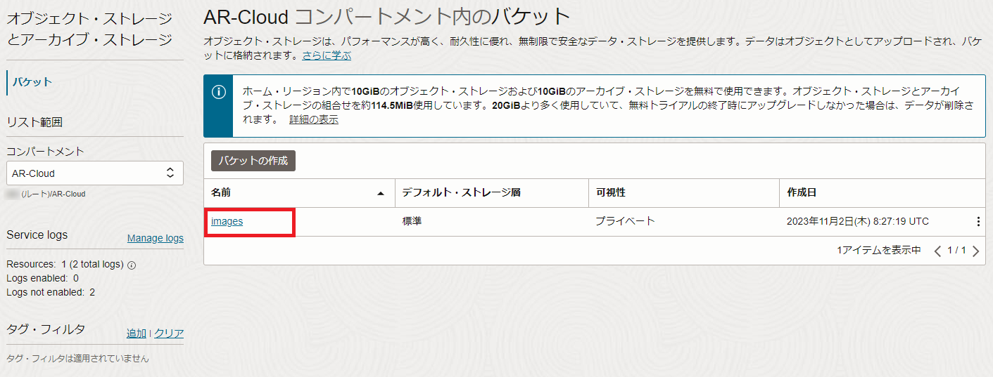 本ページではこれ以降、ここで新規作成したコンパートメント「AR-Cloud」を使うものとして説明します。