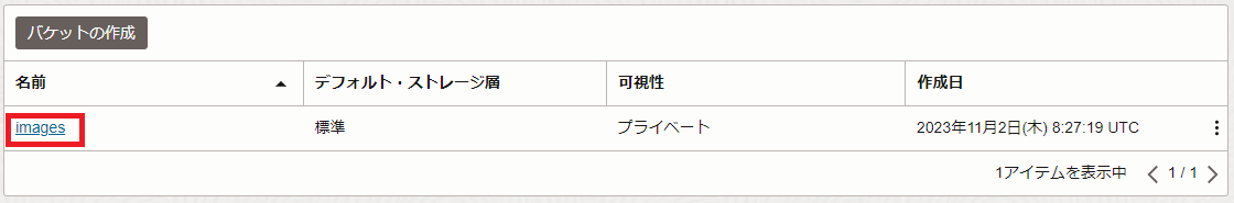 作成したバケットが一覧に表示されることを確認します。