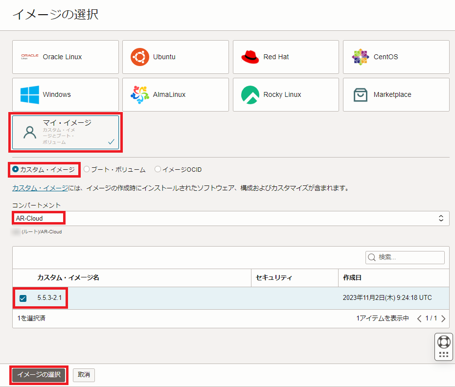 前の手順で作成したカスタム・イメージから本製品の仮想マシンインスタンスを作成します。