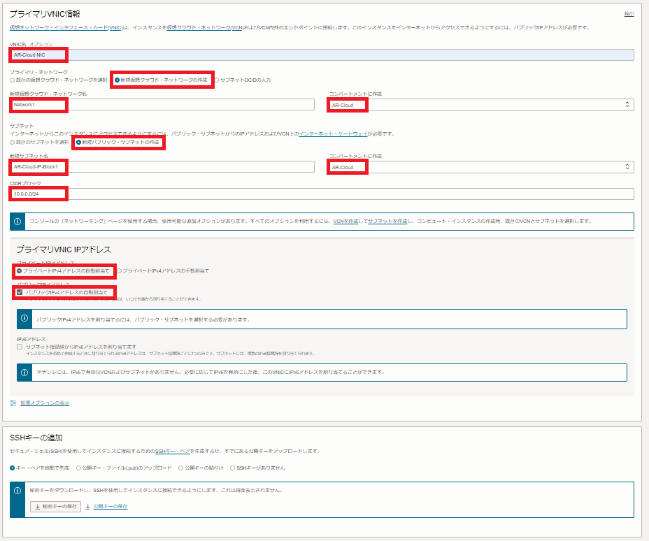 プライマリ・ネットワーク:「新規仮想クラウド・ネットワークの作成」を選択