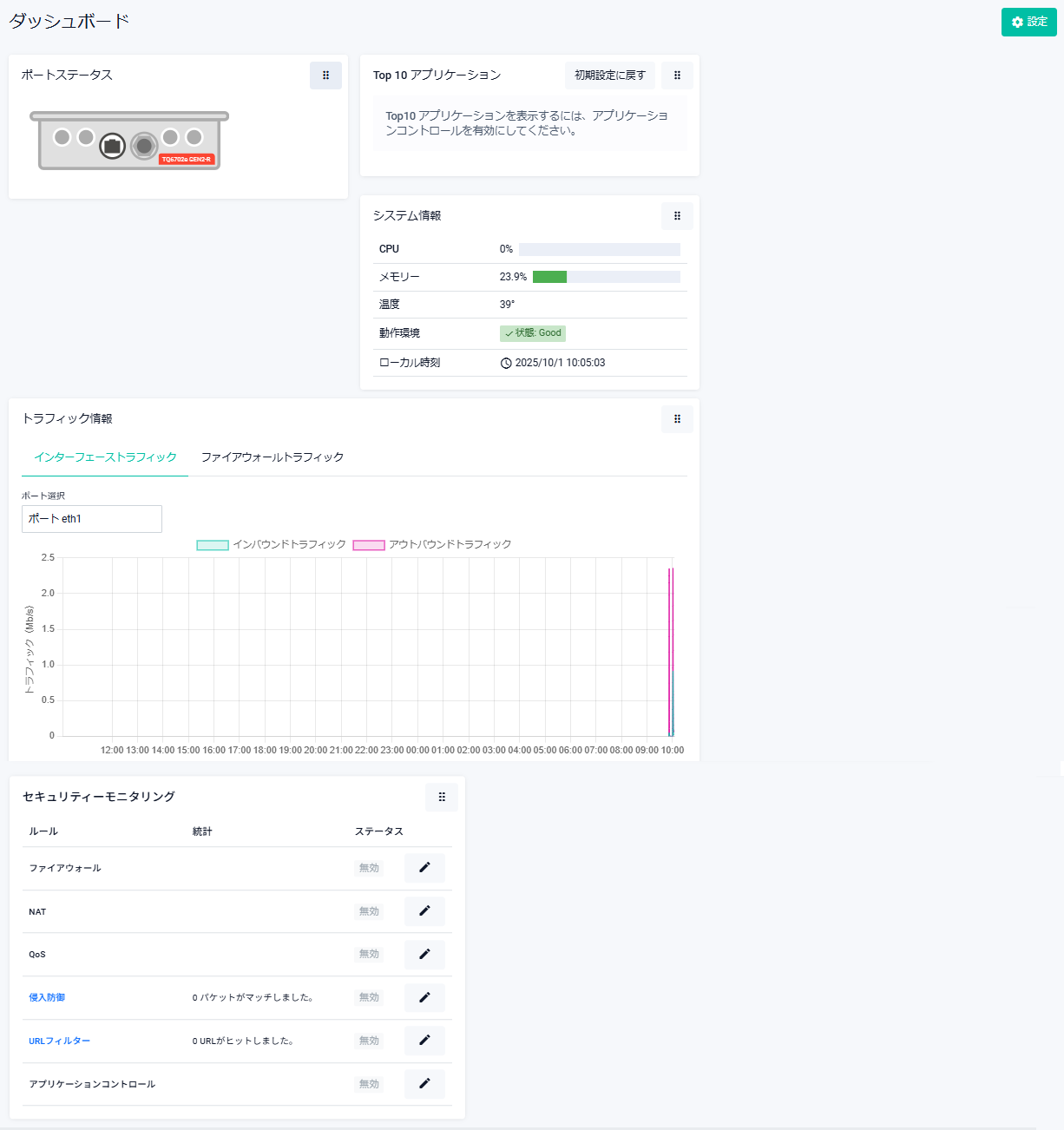 - インターフェーストラフィック - インターフェースごとのトラフィック統計(「eth1」...で表示するインターフェースを切り替えます)