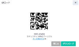 | QRコードアイコン | 無線の無線通信状態、VAPのステータスが有効の場合に表示されるアイコンです。アイコンをクリックすると、無線設定の情報が含まれるQRコードが作成されます。 |