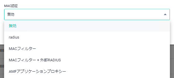 | MACフィルター - アクション | 割り当てたMACフィルターをブラックリスト、ホワイトリストのどちらとして利用するかを指定します。「ブロック」(ブラックリスト)、「許可」(ホワイトリスト)から選択してください。「MACフィルター」で「None」以外を選択した場合にのみ表示されます。 |