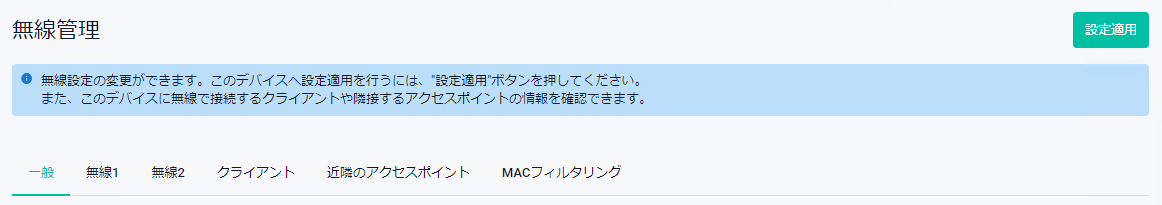 Note無線管理の各設定を行ったら、必ず画面右上の「設定適用」ボタンをクリックしてください。