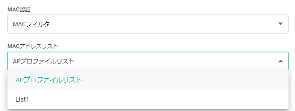 NoteAPプロファイルで指定したMACフィルターを使う場合(VAP設定の「MACアドレスリスト」で「APプロファイルリスト」を選択した場合)は、本画面に表示されるMACフィルター自身のアクション(ブロック/許可)は使用されず、「一般 - MACフィルター」画面の「MACフィルター - アクション」で指定した設定が使用されます。