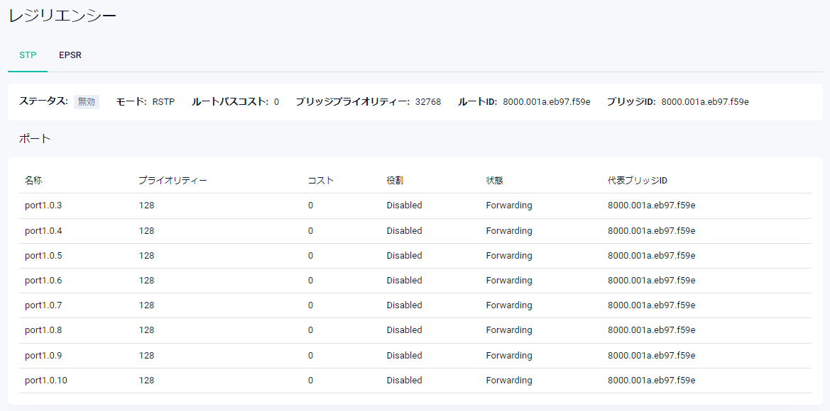 | ステータス | スパニングツリープロトコルの有効・無効が表示されます |
