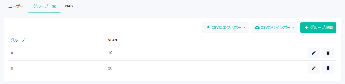 | VLAN | 登録済みユーザーグループに割り当てるVLANが表示されます |