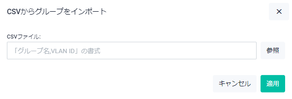| 適用ボタン | CSVファイルからユーザーグループ情報をインポートして前の画面に戻ります |