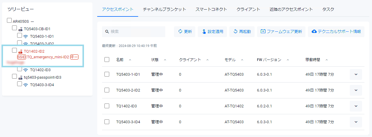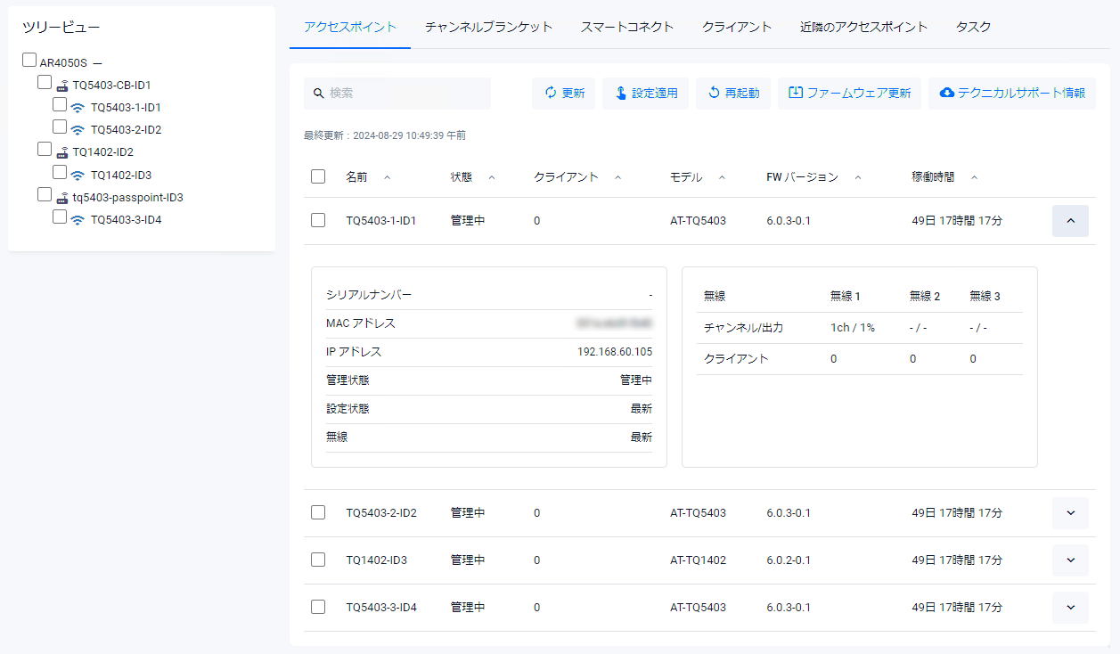 Noteアクセスポイントのファームウェア更新は1台ずつ行ってください。状態が更新中になるまで次のアクセスポイントのファームウェア更新は行わないでください。