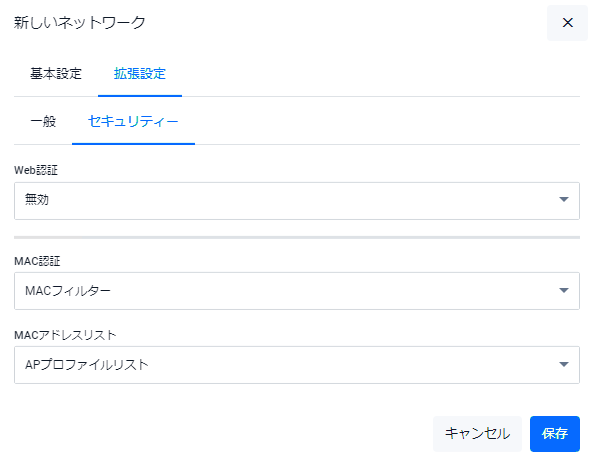 NoteAPプロファイルに割り当てて使用する場合は本画面に表示されるMACフィルター自身のアクションは使用されず、APプロファイルの「MACフィルター」、「MACフィルター - アクション」設定が使用されます。