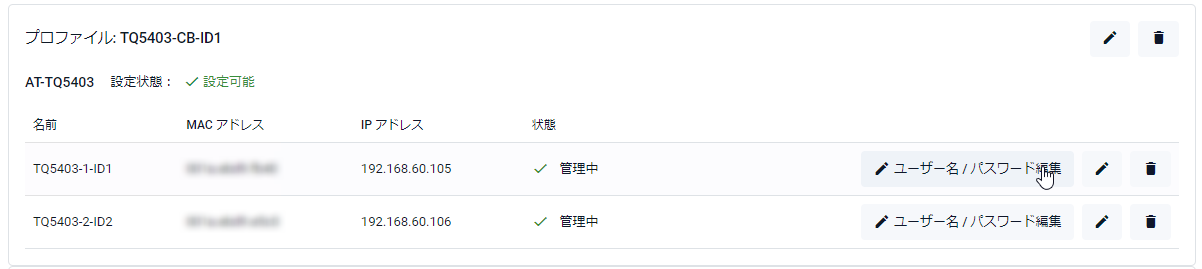 | 名前 | MACフィルターリスト名が表示されます |
