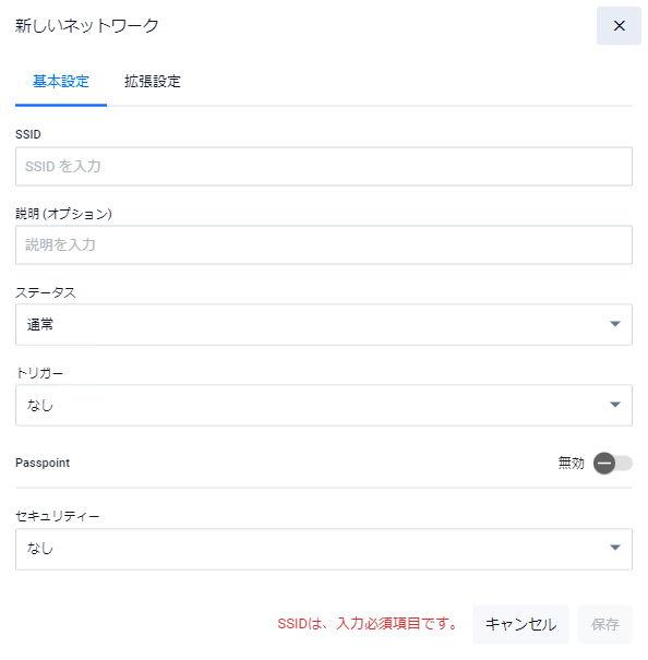 NotePasspointのネットワークを作成するには「ネットワーク追加」ボタンをクリック後に「新しいネットワーク - 基本設定」ダイアログの「Passpoint」を有効にし、「新しいネットワーク - 拡張設定」ダイアログのPasspoint/802.11uタブで行うか、「セットアップ」画面で「Passpoint基本設定」ボタンをクリックします。なお、「Passpoint基本設定」ダイアログでの設定は、Passpointのネットワークを作成する上で最低限必要な設定項目のみとなります。他の設定を行う場合はPasspointのネットワーク作成後に、該当ネットワークの編集ボタンをクリックし「ネットワーク編集 - 拡張設定」ダイアログのPasspoint/802.11uタブで行ってください。