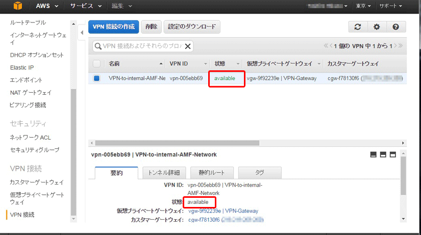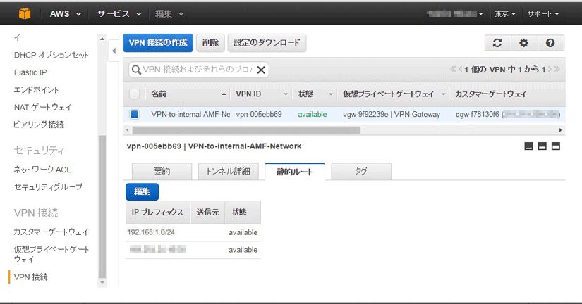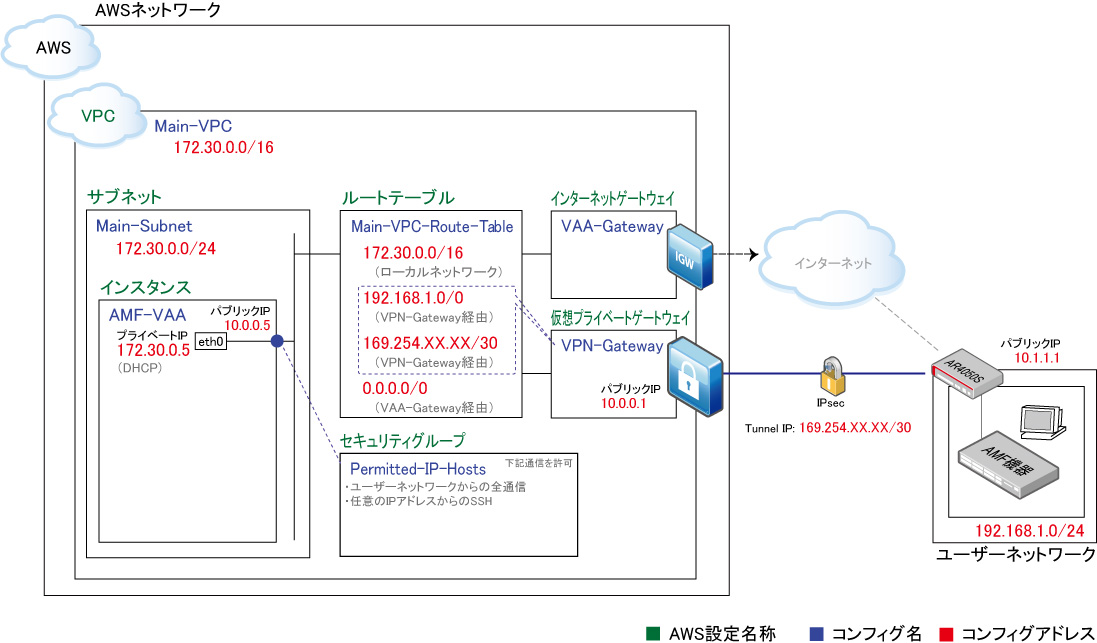 AMF Cloudには、ARルーターと同等のVPN機能が実装されているため、設定内容は後述するARルーターのものと類似しています。