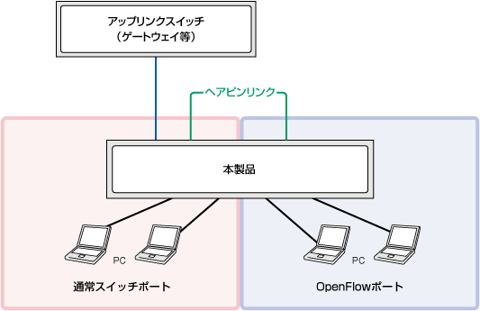 | ハイブリッドOpenFlowポート | タグ付き | データプレーン、従来通信共通のアップリンクとして使用 コントローラー接続にも使用可能 |