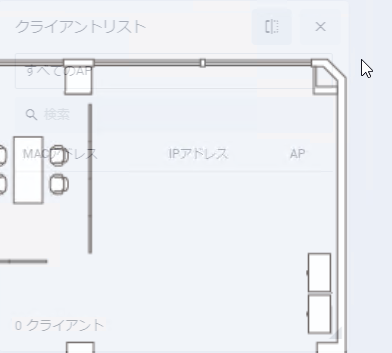 クライアント数をクリックすると、無線クライアントの一覧(MACアドレス/IPアドレス/AP名)がポップアップ表示されます(クライアントリスト)。