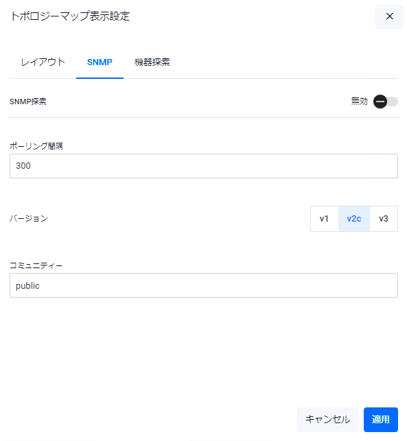 トポロジーマップにおけるノードアイコンの集約・展開表示 を変更するためのボタンです。クリックにより「トポロジーマップ表示設定」 が表示されます。