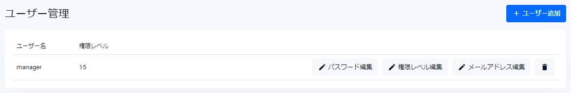 | 権限レベル | 新規ユーザーの権限レベルを入力してください |