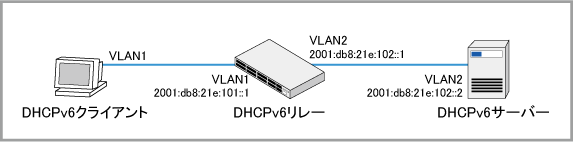 DHCPリレーエージェント機能を使用するために必要な設定を示します。