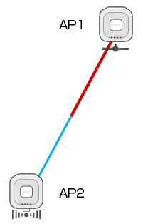AP間を結ぶ線は中央で2つに分かれており、例えば無線AP1-無線AP2間のリンクでは、無線AP1寄りの半分が無線AP1からAP2への通信、無線AP2寄りの半分が無線AP2からAP1への通信の使用率を表します。