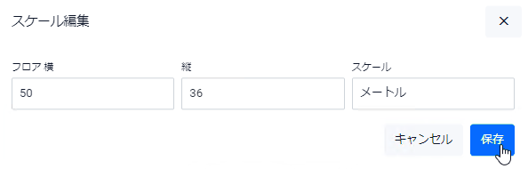 「スケール」欄でマップ上における背景画像領域の実サイズを指定して、「保存」ボタンをクリックします。