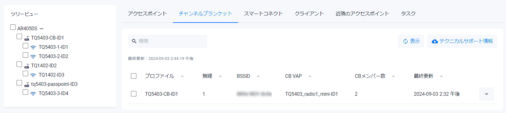 Noteチャンネルブランケットを構築している無線APがダウンしたとき、その無線APと通信していた無線端末の通信復旧には2分ほどかかることがあります。なお、他の無線APと通信している無線端末には影響しません。