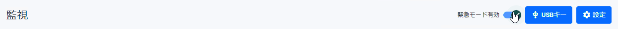 | USBキー挿入による緊急モード稼働スイッチ | USBを挿入後にスイッチを「有効」にします |
