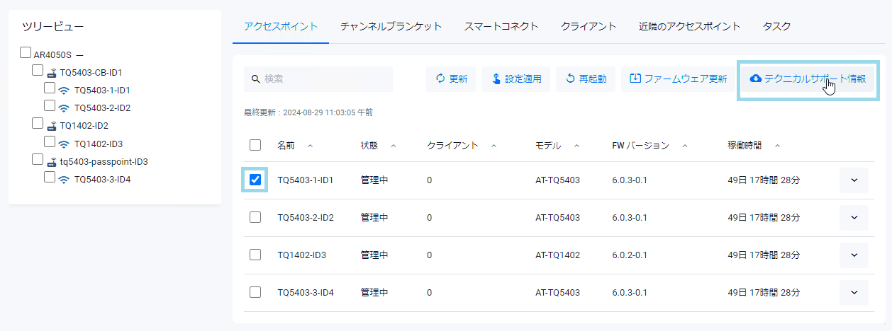 Noteアクセスポイントのファームウェア更新は1台ずつ行ってください。状態が更新中になるまで次のアクセスポイントのファームウェア更新は行わないでください。