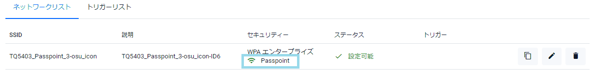 NotePasspointのネットワークを作成するには「ネットワーク追加」ボタンをクリック後に「新しいネットワーク - 基本設定」ダイアログの「Passpoint」を有効にし、「新しいネットワーク - 拡張設定」ダイアログのPasspoint/802.11uタブで行うか、「セットアップ」画面で「Passpoint基本設定」ボタンをクリックします。なお、「Passpoint基本設定」ダイアログでの設定は、Passpointのネットワークを作成する上で最低限必要な設定項目のみとなります。他の設定を行う場合はPasspointのネットワーク作成後に、該当ネットワークの編集ボタンをクリックし「ネットワーク編集 - 拡張設定」ダイアログのPasspoint/802.11uタブで行ってください。